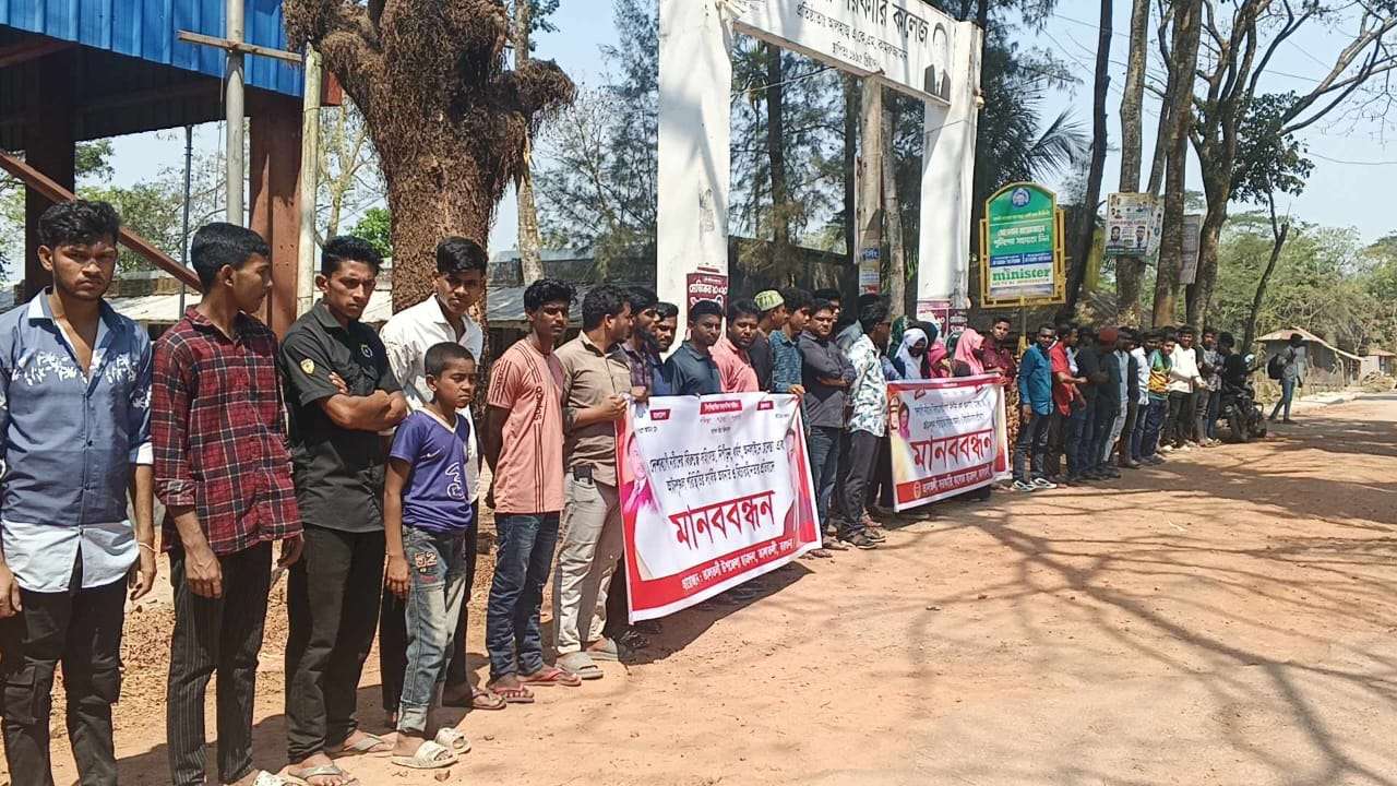 নারীর প্রতি সহিংসতা ও বিচারহীনতার প্রতিবাদে তালতলীতে ছাত্রদলের মানববন্ধন